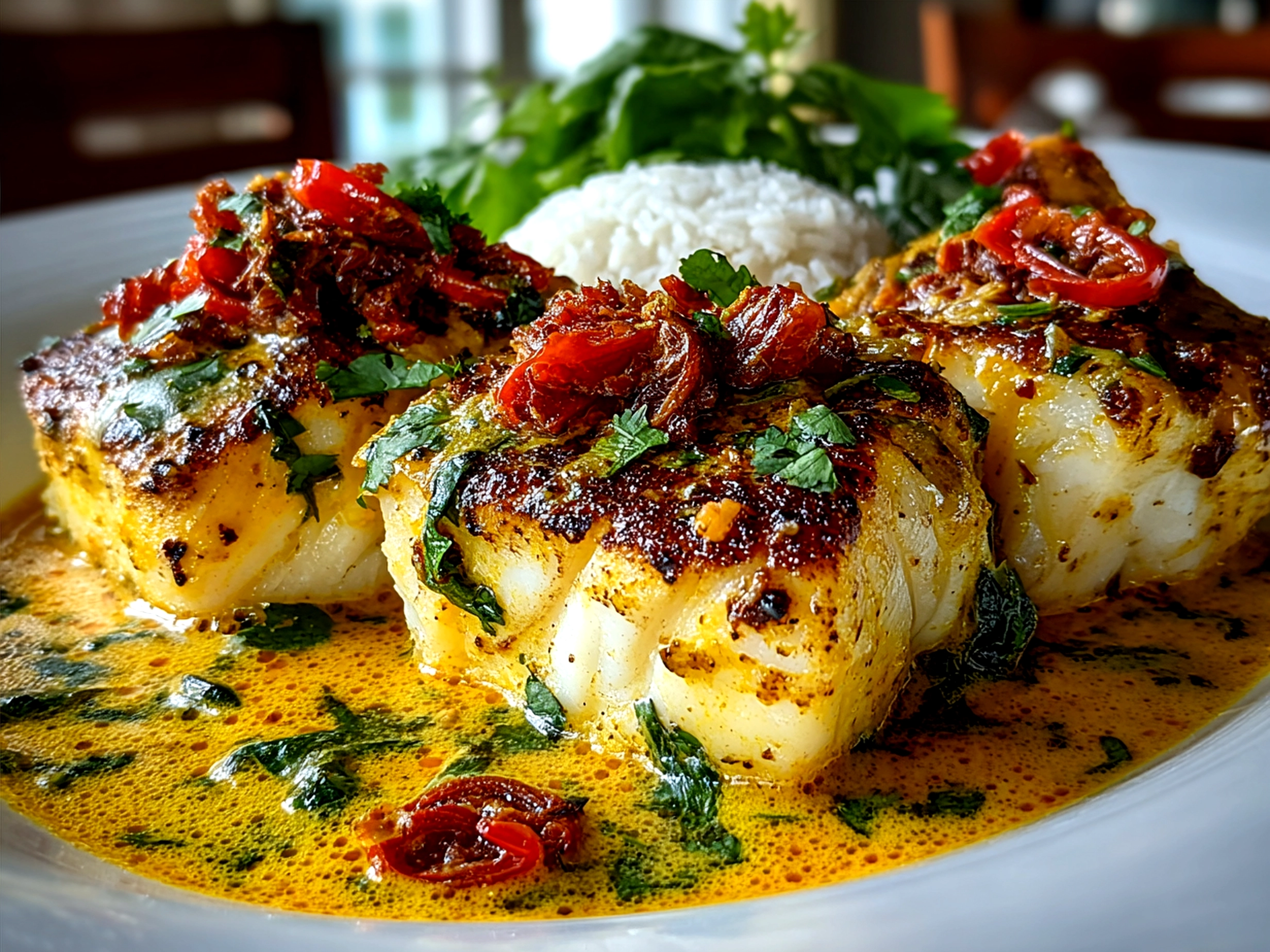 Look for the fish to flake easily when gently pressed with a fork and turn opaque. Resist the urge to overcook—it should feel tender and moist, carrying the richness of your coconut curry sauce.