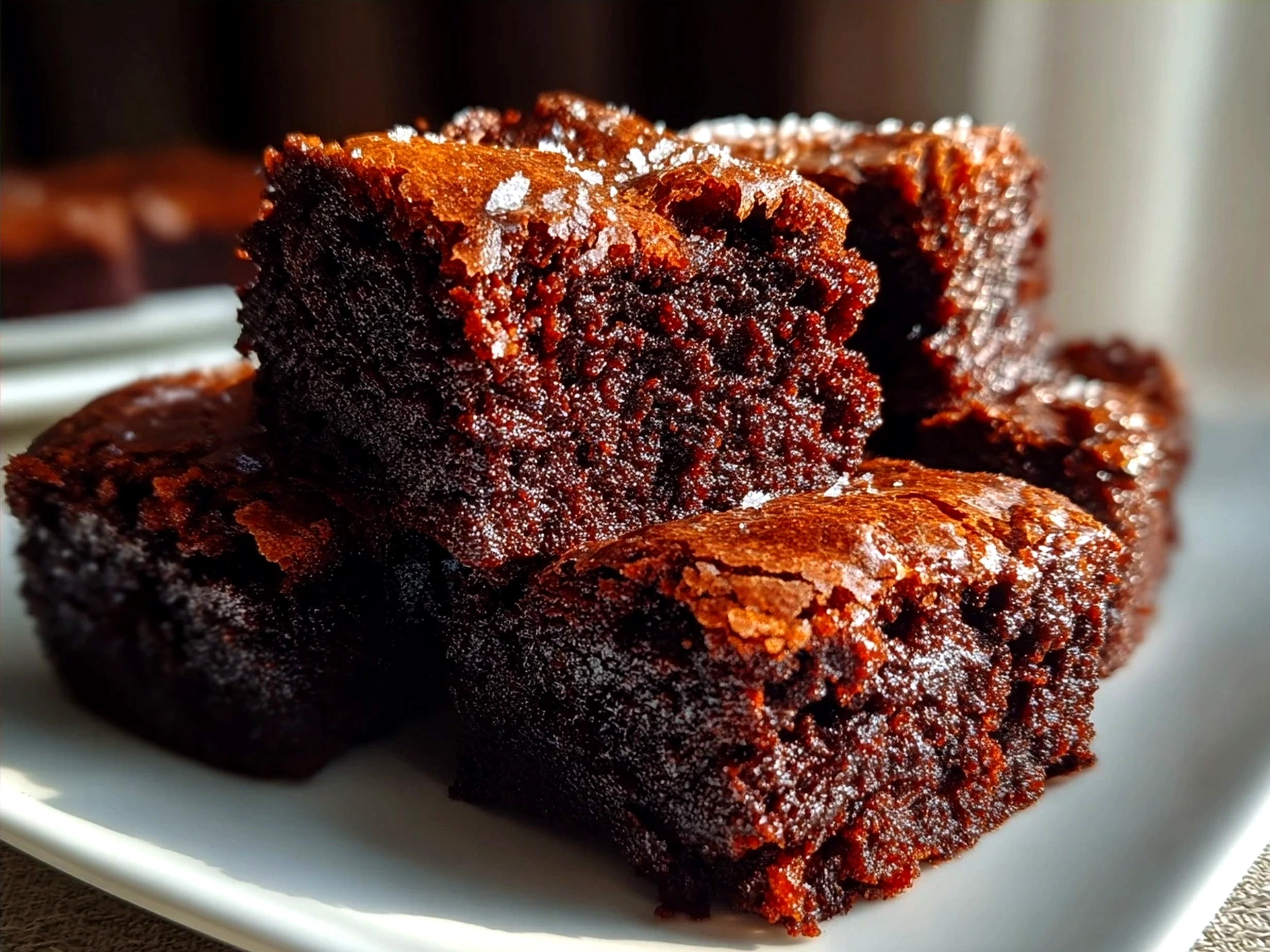 Freshly baked Date Brownies arranged on a serving plate ready to enjoy