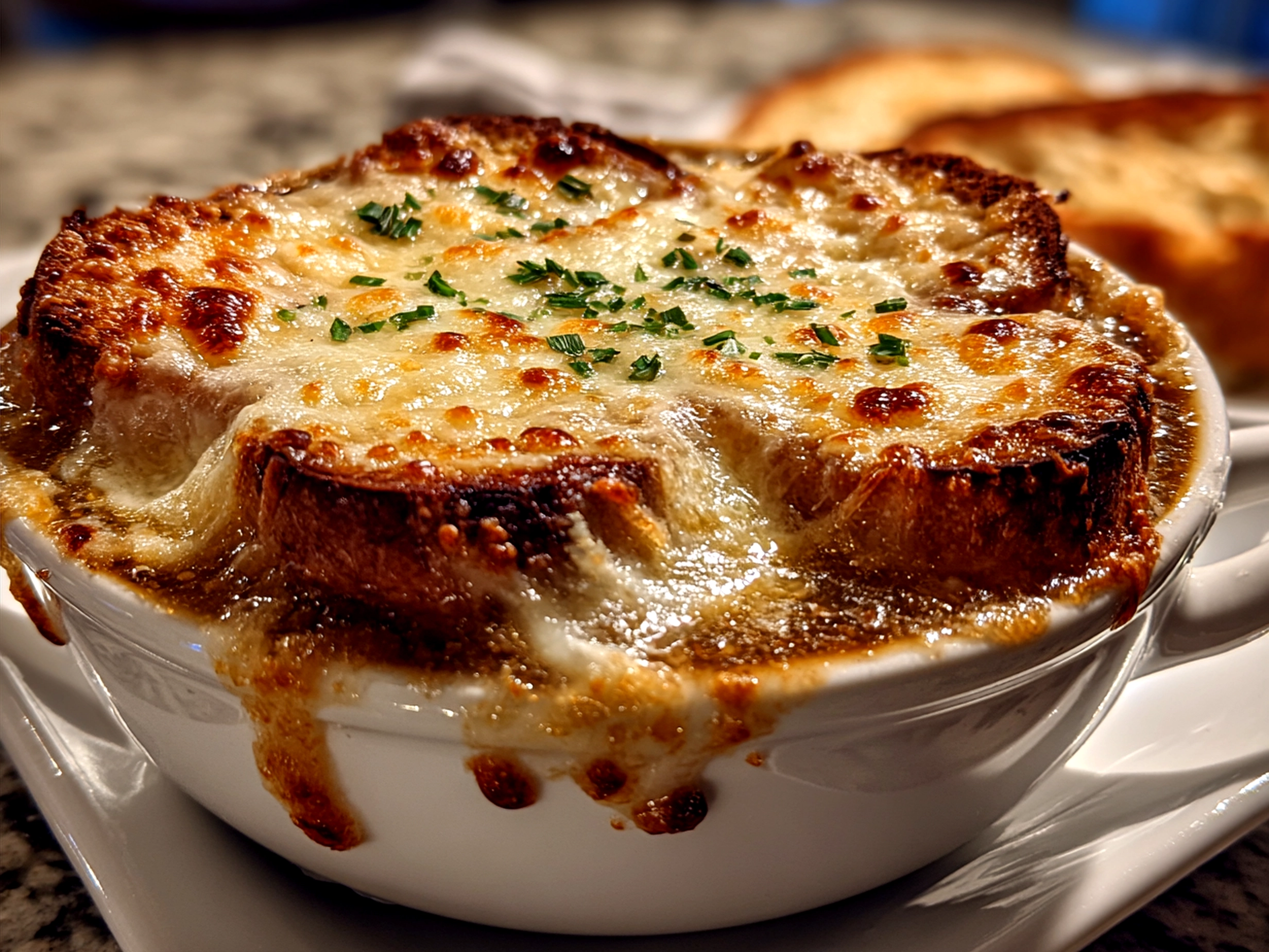 My most nurturing version features a classic beef broth base, slow caramelized onions, homemade toasted French bread, and a thick layer of Gruyere cheese melting under the broiler. It feels like a warm hug, no matter the day.
