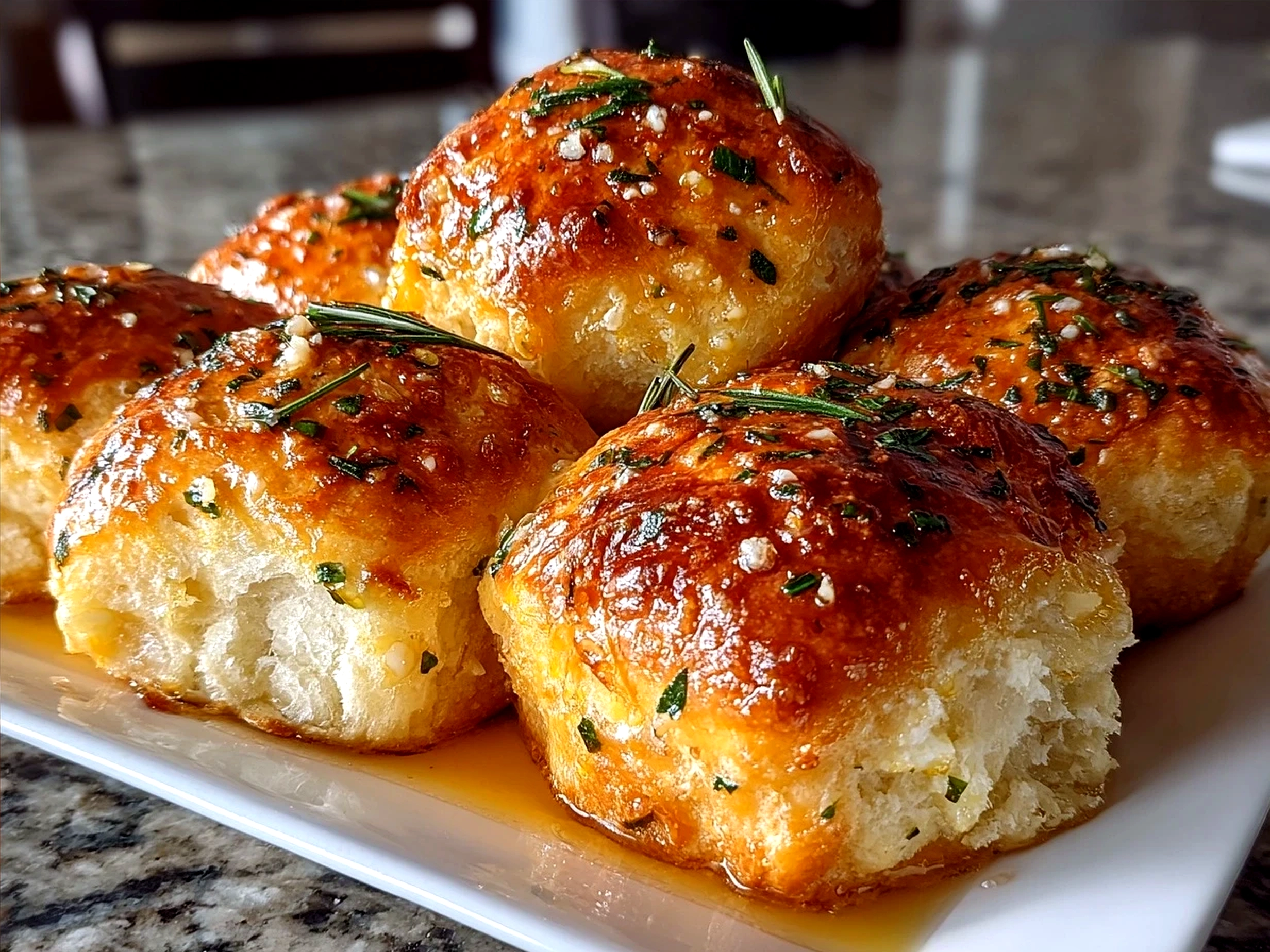 Soft, fluffy dinner rolls brushed with rich garlic butter, perfect for complementing any meal or enjoying as a savory snack.